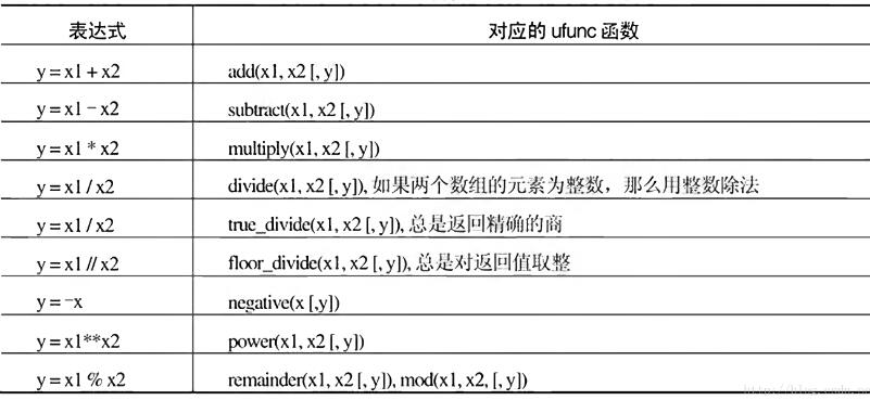 ufunc是universal function的缩写,意思是这些函数能够作用于narray对象的每一个元素上,而不是针对narray对象操作,numpy提供了大量的ufunc的函数。这些函数在对narray进行运算的速度比使用循环或者列表推导式要快很多,但请注意,在对单个数值进行运算时,python提供的运算要比numpy效率高。