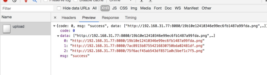 //upload var uploadBtn = document.querySelector('.el-upload'); uploadBtn.onchange = function (e) { let files = this.files; console.log(this.files); const xhr = new XMLHttpRequest(); xhr.open("post", "/upload", true); // xhr.setRequestHeader("Content-Type", "application/x-www-form-urlencoded"); xhr.onreadystatechange = function () { if (this.readyState === XMLHttpRequest.DONE && this.status === 200) { console.log(JSON.parse(this.responseText)); const {data} = JSON.parse(this.responseText); if(!data) return; const imageList = data.slice(0); let imageStr = ''; imageList.forEach(img=>{ imageStr += `<img src="${img}" />`; }); document.getElementById("result").innerHTML = imageStr; } }; const formData = new FormData(); // 多个file 同时上传 if(files && files.length){ for (let i=0;i<files.length;i++) { formData.append("file", files[i]) } } console.log(formData); xhr.send(formData); };