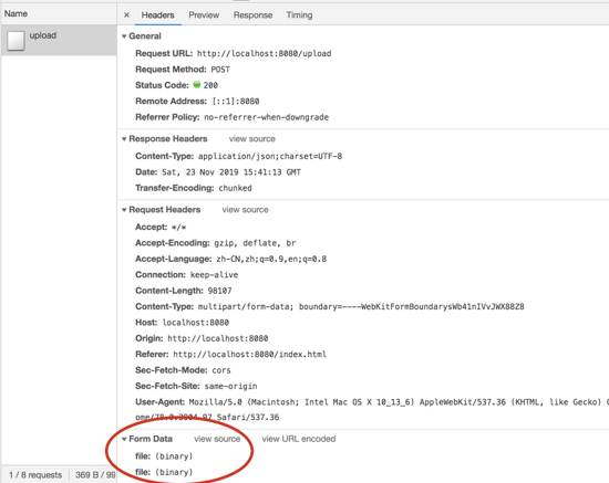 区别于之前的单个 formData.append(); 这里我们可以同时 append 多个相同名字的文件二进制文件流;