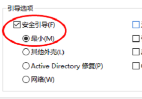 3、点击引导,然后勾选安全引导和最小。