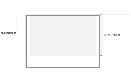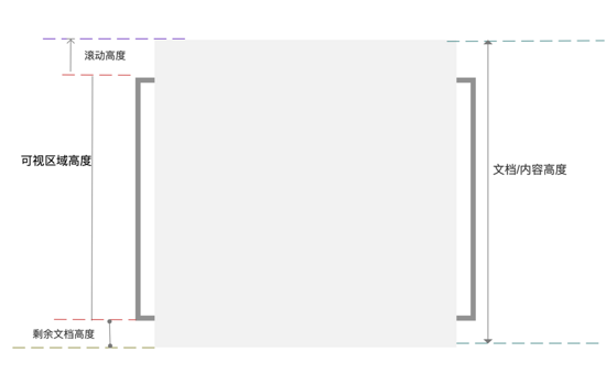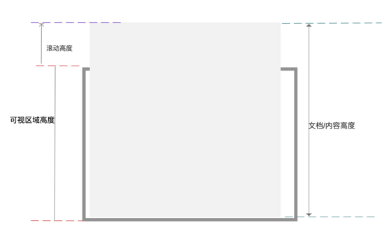 经过上面三种情况的分析,我们需要拿到 可视区域的高度 , 滚动高度 , 文档高度 这三个变量来进行比较。