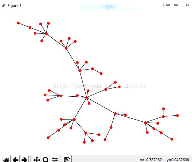 #Copyright (c)2017, 东北大学软件学院学生 # All rightsreserved #文件名称:a.py # 作 者:孔云 #问题描述: #问题分析:。代码如下: import networkx as ne #导入建网络模型包,命名ne import matplotlib.pyplot as mp #导入科学绘图包,命名mp #BA scale-free degree network graphy BA=ne.barabasi_albert_graph(50,1) ps=ne.spring_layout(BA)#布置框架 ne.draw(BA,ps,with_labels=False,node_size=30) mp.show()