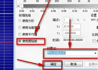 5、我们选择降噪面板使用剪切板,那里也选择预置剪切板噪音版点击确定。