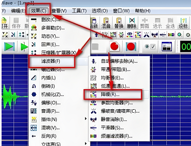 4.复制噪音后,按下Ctrl a点击菜单栏效果选择滤波器在选择降噪。