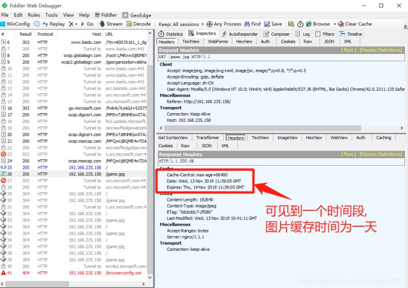 当Nginx将网页数据返回给客户端后,可设置缓存的时间,以方便在日后进行相同内容的请求时直接返回,避免重复请求,加快了访问速度般针对静态网页设置,对动态网页不设置缓存时间,可在Windows客户端中使用fiddler查看网页缓存时间