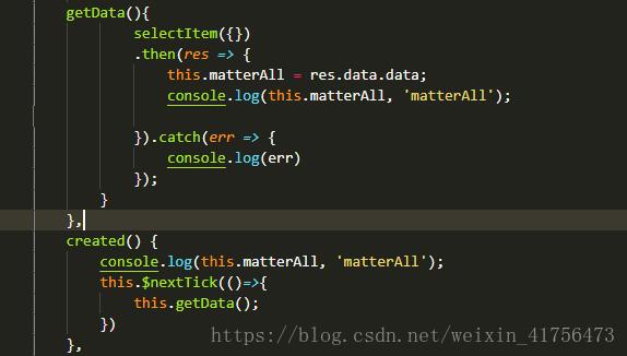 在上面data()中,我定义了matterAll:[],也就是空的数组,