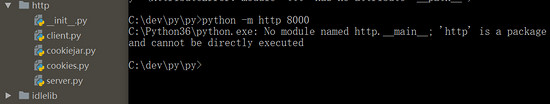 仍以前文创建 HTTP 服务为例,“http”是 Python 内置的一个包,它没有“__main__.py”文件,所以使用“-m”方式执行时,就会报错:No module named http.__main__; 'http' is a package and cannot be directly executed。