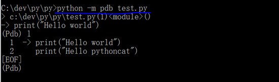 它的第三个常见用法是执行 pdb 的调试命令“python -m pdb xxx.py”,以调试模式来执行“xxx.py”脚本: