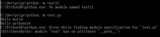 但它的前提是:在执行目录中存在着“test.py”,且只有唯一的“test”模块。对于本例,如果换一个目录执行的话,“python test.py”当然会报找不到文件的错误,然而,“python -m test”却不会报错,因为解释器在遍历 sys.path 时可以找到同名的“test”模块,并且执行: