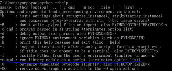 python [-bBdEhiIOqsSuvVWx?] [-c command | -m module-name | script | - ] [args]