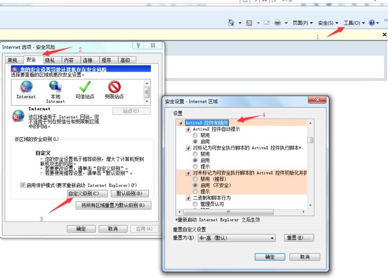 因为ActiveX是IE流量器的插件,所以这个只能在IE浏览器可用.如果你发现IE浏览器也没出来,那你可能是ActiveX插件相关功能没开,需要在IE浏览器进行如下设置