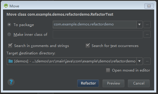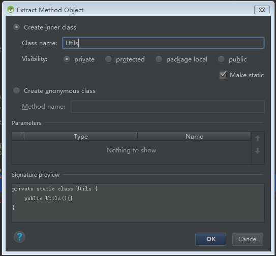 作用:将该选中的内容提取为一个方法,并提取到一个独立的类中。和“Method”很类似,不同的是提取的方法最后放在哪里。