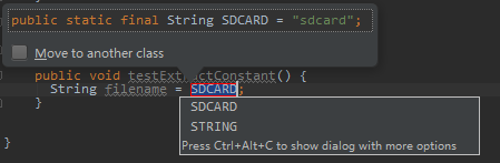 public static final String SDCARD = "sdcard"; public void testExtractConstant() { String filename = SDCARD; }