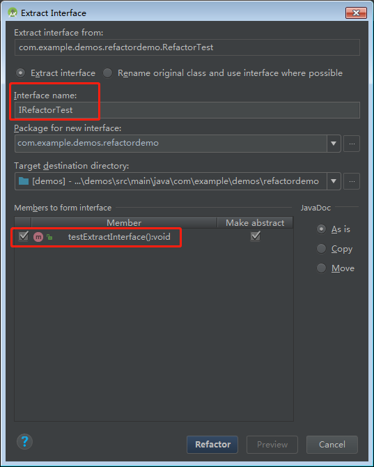 interface IRefactorTest { void testExtractInterface(); } public class RefactorTest implements IRefactorTest { @Override public void testExtractInterface() { System.out.print("testExtractInterface"); } }