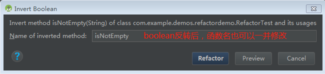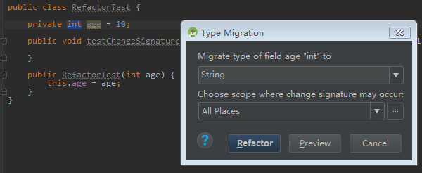 选中要修改的类型,执行该重构方法,会弹出对话框,根据需要编辑类型,选中作用范围即可。指定范围内,与该变量相关联处都会被修改。