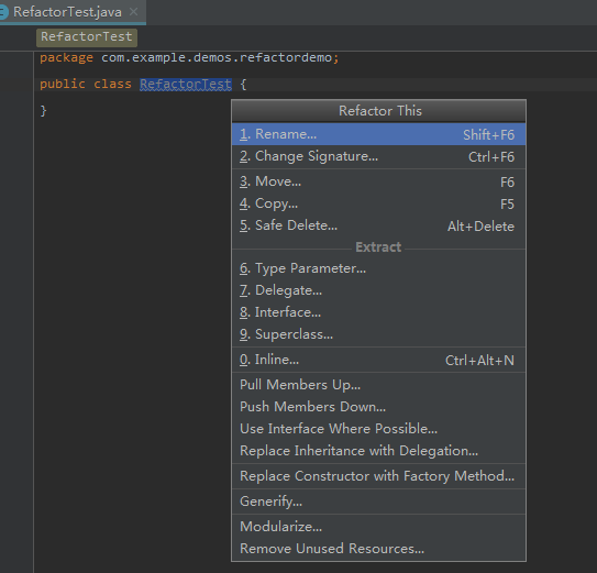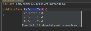 作用:对光标选中项进行重命名。不仅可以对类中的成员变量进行重命名,还能对文件名,包名等进行重命名,Module中与之相关联的所有地方都会一起修改,而不用一一手动修改。