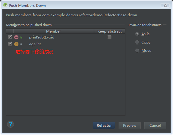 作用:将父类中的成员下移到子类中,正好是“Pull Members Up”的反向操作。