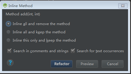 原先需要调用一个方法,重构后直接把该方法中的代码给复制过来了。因为上面选中的是内联所有的,并且删除该方法,所以add方法也就被删除了。