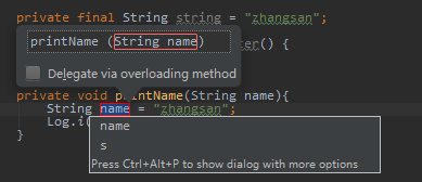 public void testExtractParameter() { printName("zhangsan"); } private void printName(String name){ Log.i("demo","My name is:"+ name); }