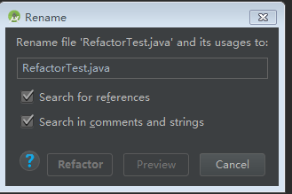 示例:在显示的对话框中输入新文件名。可以在下方的选项框中选择修改范围,引用该文件的地方,注释,字符串中都可以选择一起修改。