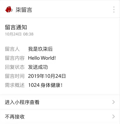 虽然看起来稍微有点复杂,但其实也只要向服务器发送一个请求就可以了,获取和调用都由服务器处理,收到的消息和模板消息差不多。