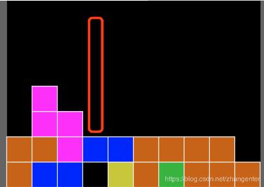 我们一定会尽可能避免在红框的位置堆叠,因为这样有助于我们消除空洞上方的方块后可以尽快进入空洞进行新的消除,但是机器人现在还没有这个考虑,所以我们在Matrix里继续增加一个空洞上方方块数的计算。