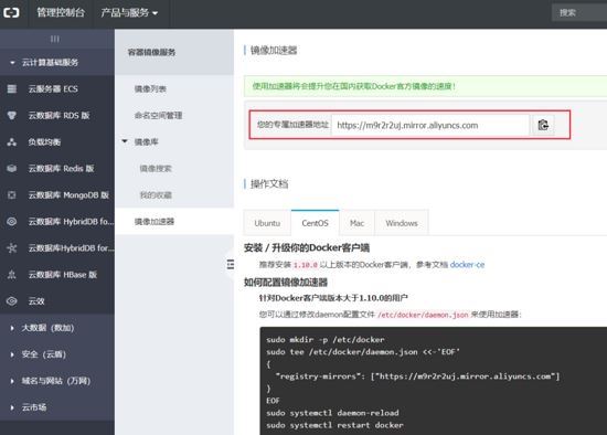 我们可以借助阿里云的镜像加速器,登录阿里云(https://cr.console.aliyun.com/#/accelerator )
