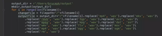 filepath = r"/Users/brucepk/test" # 待转换视频存放的路径 os.chdir(filepath) # 切换到改路径下 filename = os.listdir(filepath) # 得到文件夹下的所有文件名称
