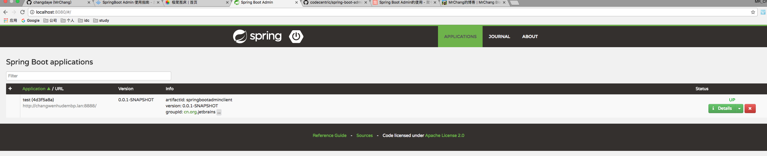 server.port=8888 spring.boot.admin.client.name=test management.security.enabled=false spring.boot.admin.url=http://localhost:8080