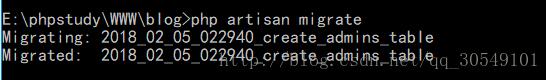 接下来运行数据迁移命令 php artisan migrate 来创建数据表