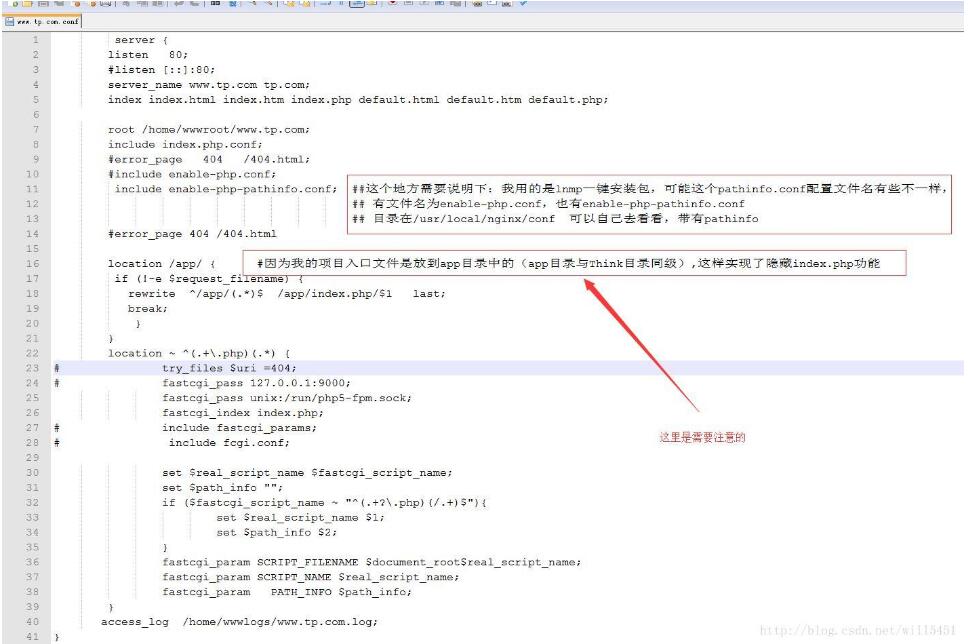 include enable-php-pathinfo.conf; ##这个地方需要说明下:我用的是lnmp一键安装包,可能这个pathinfo.conf配置文件名有些不一样,