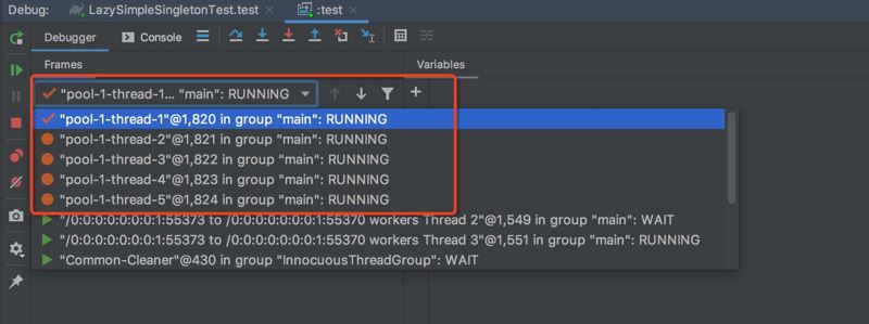 在debug控制台能够很方便的查看线程的执行状态,也可以很方便的选择某个线程去执行:
