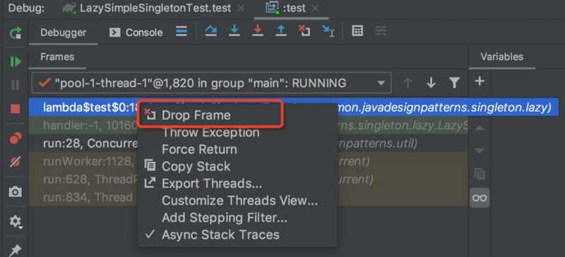 Intellij IDEA 的debug断点调试是有一个模式的选择的,就像下面这张图,平时我们都使用的是默认的 ALL(在Eclipse中默认是线程模式) ,这种模式我们只能将一个线程断下来,但其他线程却已经执行过了;而将其改为 Thread 后,就可以多个线程都断下来,并且可以很方便的切换线程的执行流程,这就是多线程调试。