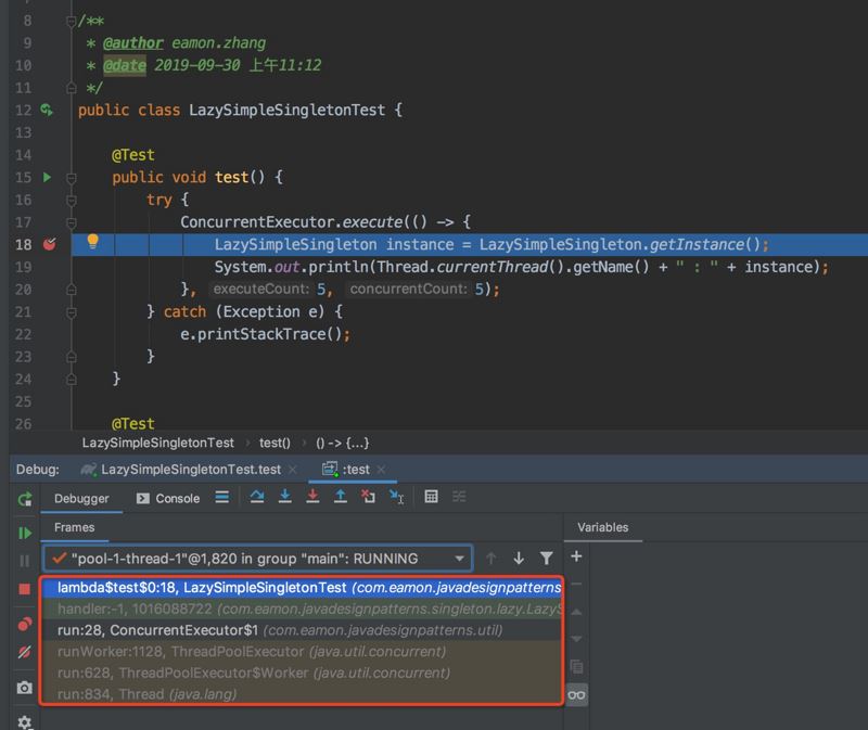 我们说过,IDEA中的debug功能是非常强大的,要使用条件断点也非常简单,下面这张图片中 Condition中的内容代表当name为eamon:23时,程序执行到断点处停下来。