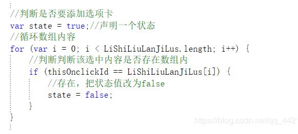 接着就用要使用到刚刚的数组了,用数组判断当前点击的内容是否已经添加到选项卡中。