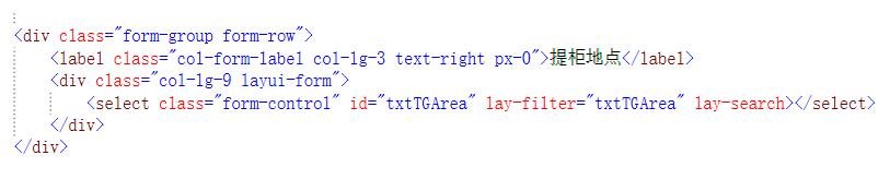 另外,还要在一个容器中设定 class="layui-form" 来标识一个表单元素块,如要使用带搜索的下拉框只需在select标签添加一个”lay-search”属性就可以了。