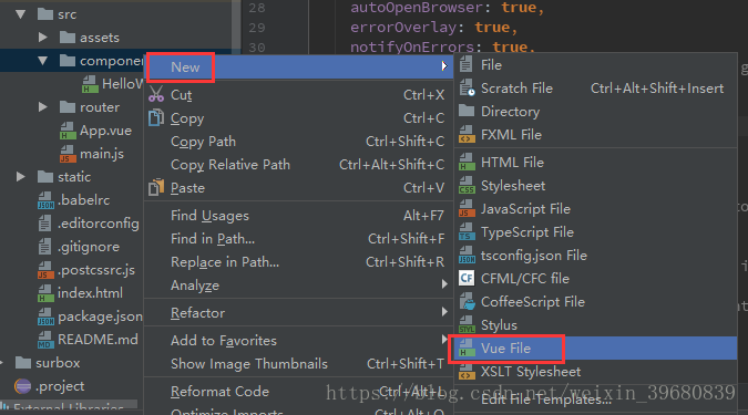 设置完成后就可以直接在项目中新建.vue格式文件了~~~