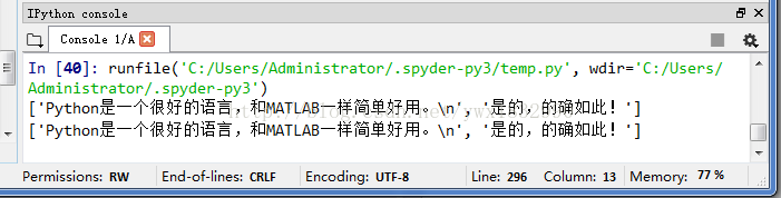 file.write("Python是一个很好的语言,和MATLAB一样简单好用。\n是的,的确如此!")