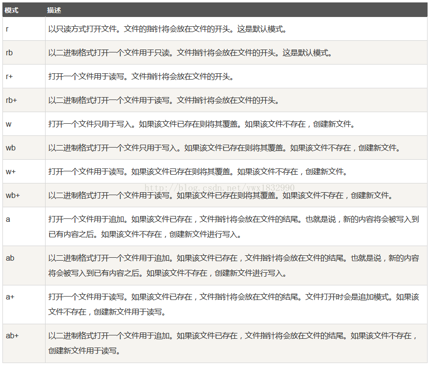 注:这个参数是非强制的,默认文件访问模式为只读模式(r)