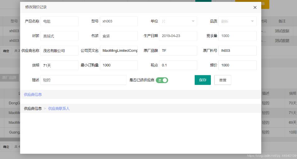 把回填事件写入重置按钮点击事件这样设置的好处是在点击重置是在点击重置时可以重新回填数据,可以给用户选择的空间,效果图如下: