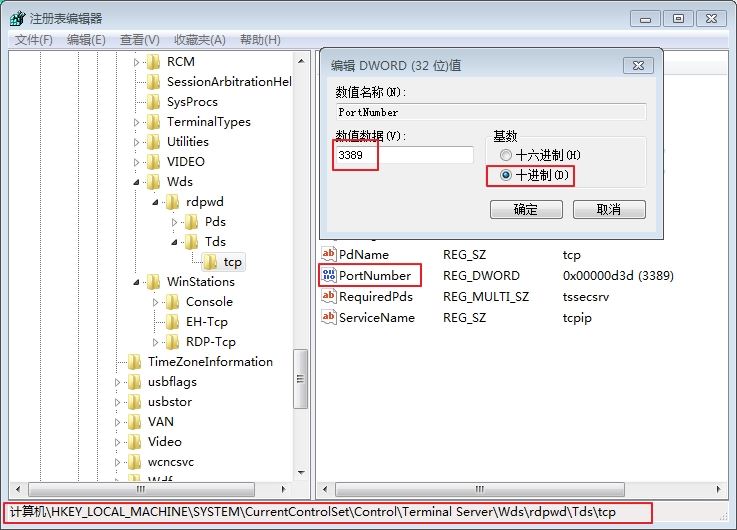 2、在【注册表编辑器】分别修改下列目录中<PortNumber>的值为需要更改的端口号,如:8888