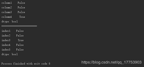 转置:frame3.isnull().T.any(),得到的每一行求any()计算的结果,输出为行的Series。