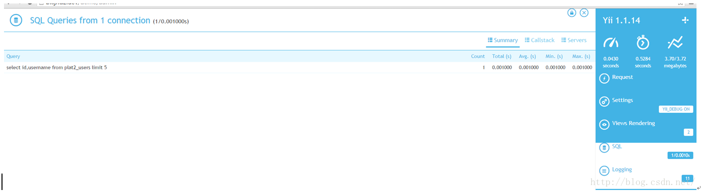 调整数据库配置。'db'=>array( //... 'enableProfiling'=>true, 'enableParamLogging'=>true, ),
