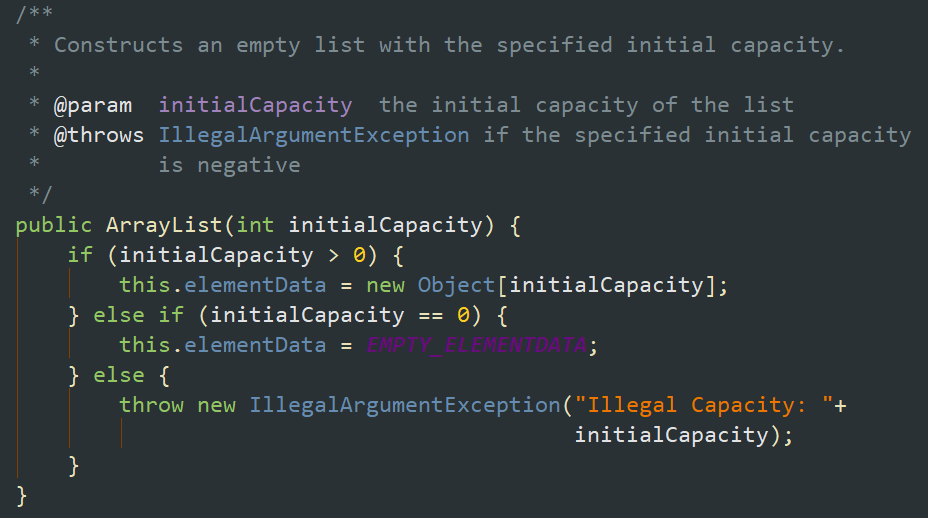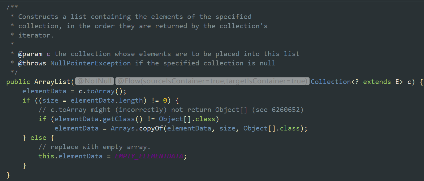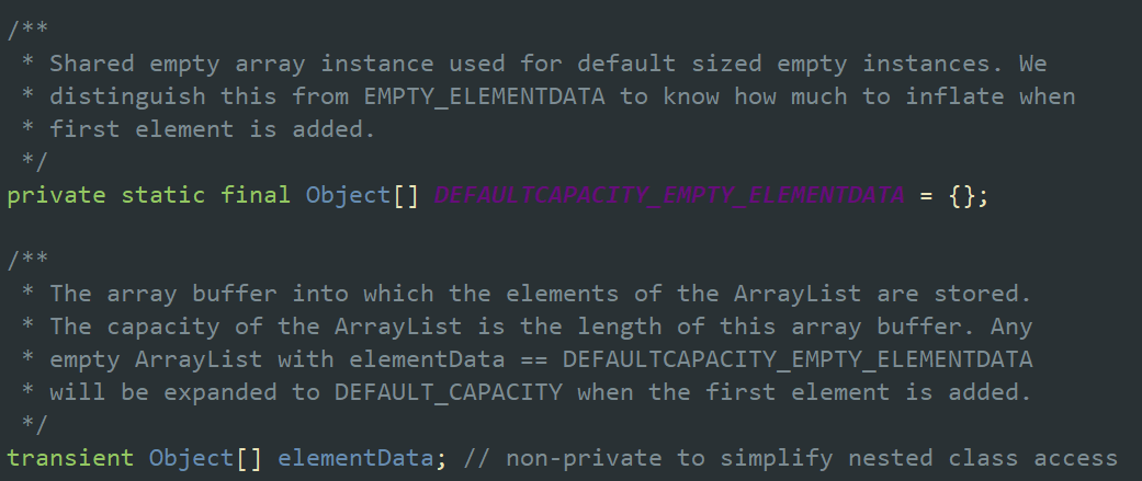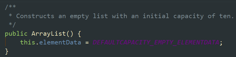 2,判断数组大小是否为0,否则将默认EMPTY_ELEMENTDATA赋值给数组。