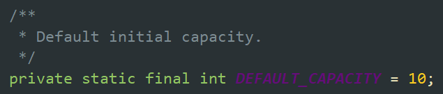 ArrayList在初始化时默认的数组容量为10,源码如下: