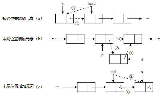 - 增加元素:只需要修改连接下个元素的地址即可。