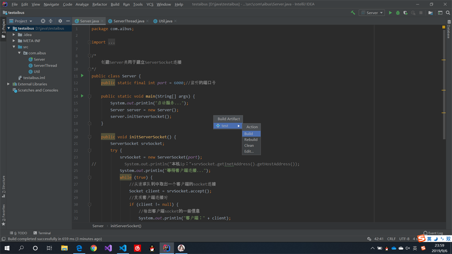*点击Build选项。*这里Build选项是第一次构建jar,Rebuild是修改后重新构建jar,clean是删除jar。