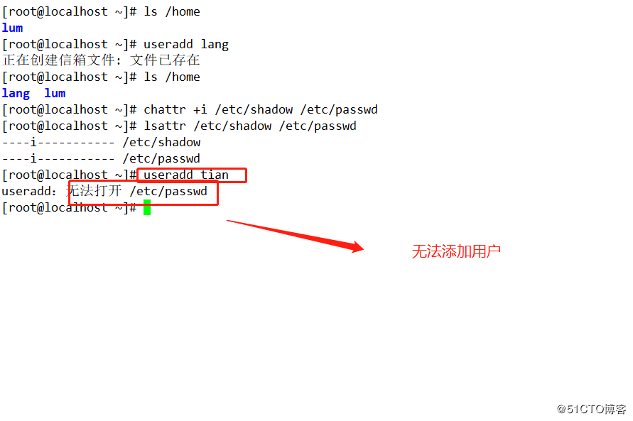 对于Linux服务器中长期不用的用户账号,可以暂时将其锁定。账号配置信息放在/etc/passwd 和/etc/shadow 中,可以用chattr命令对账号进行管理