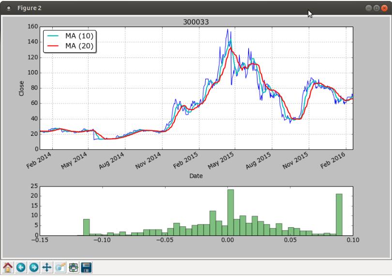 移动均线是股票最进本的指标,本文采用numpy.convolve计算股票的移动均线