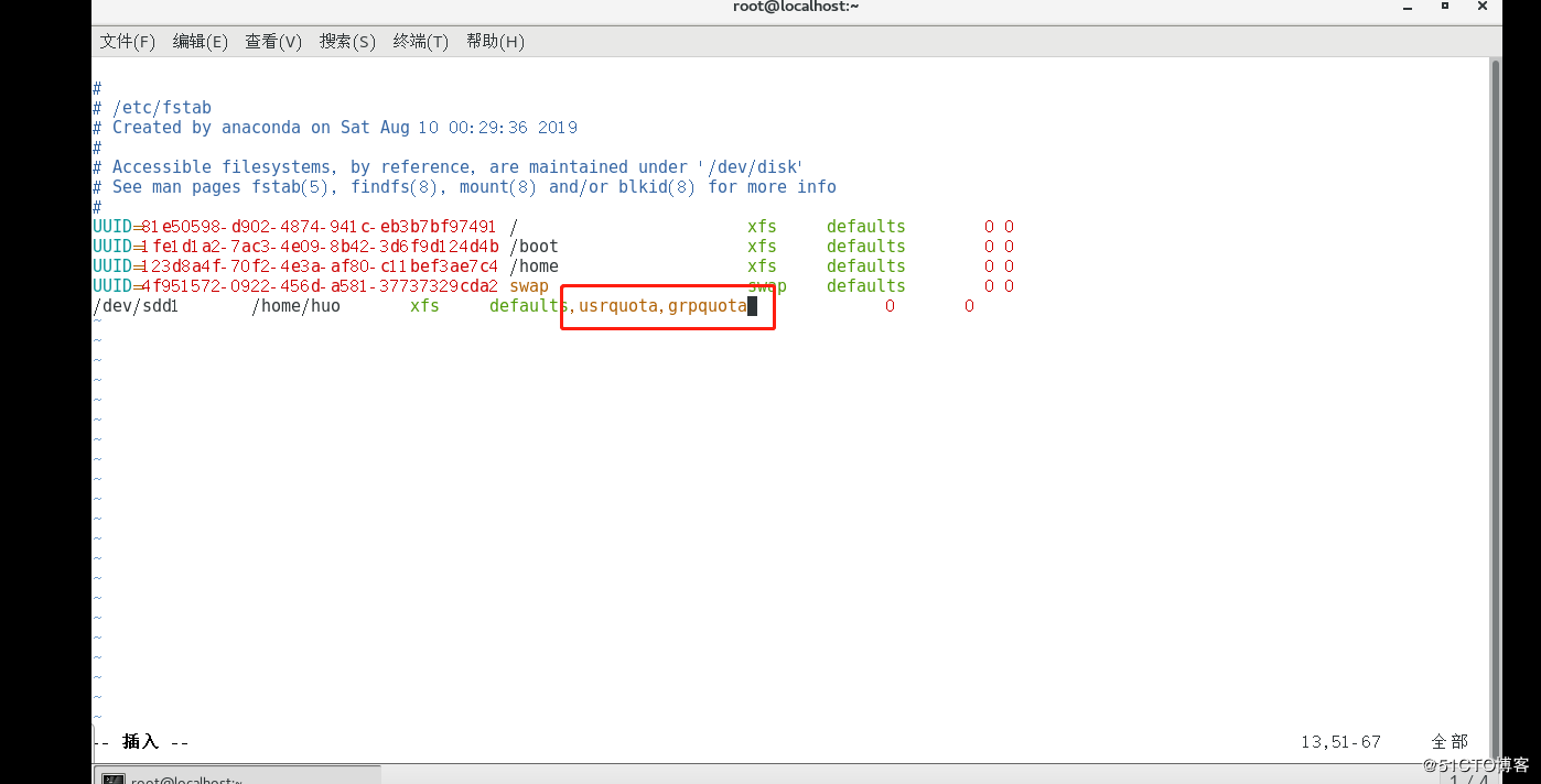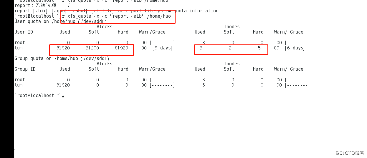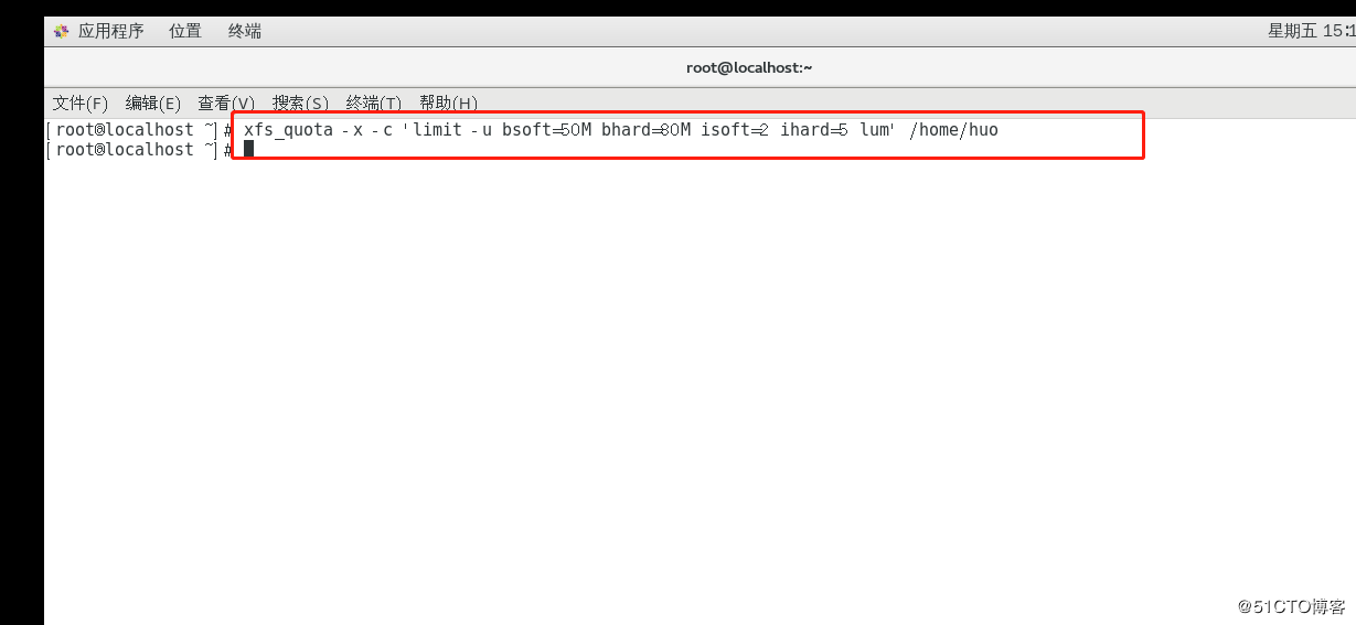 对用户lum进行磁盘配额设置,磁盘空间软限制50M,硬限制80M,文件数量软限制2个,硬限制5个
